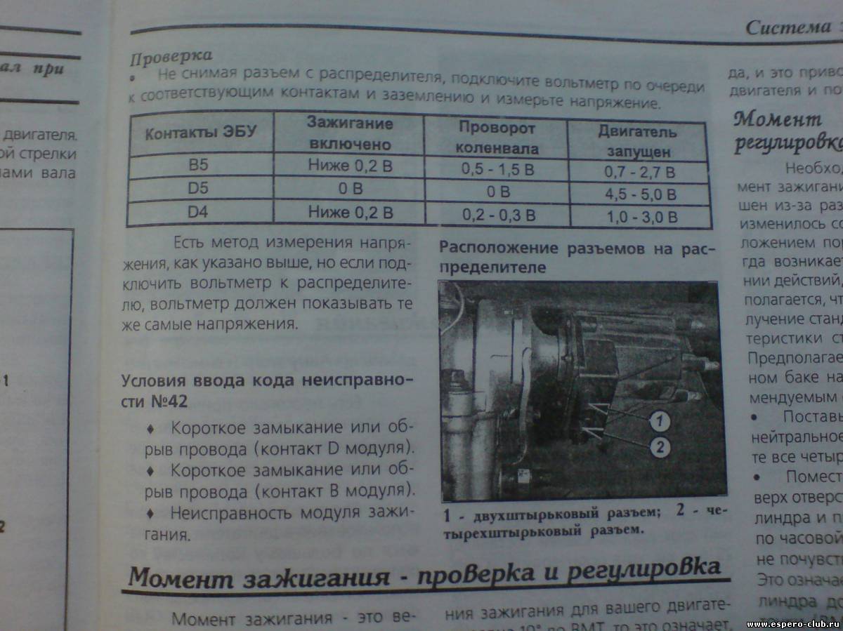 | 42-Цепь электронногно регулир.момента зажигания???Тезка это нехрена мне ничего не даёт, нет мануала,код ошибки-что вероятно вышло из строя,и куда лезть??Скорее всего коммутатор пиз--ит,или цепь от трамблёра и дальше???