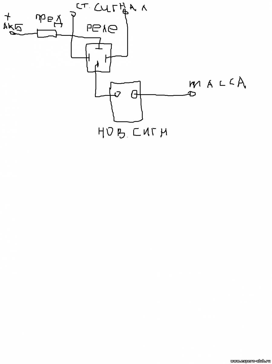 Цитата GIZ (  ) желательно только знать приходяший + на кнопку сигнало до самого сигнала находится или после т.е. катушку реле нужно ставить как бы вместо сигнала в родной схеме. А какая разница?Я хочу дудку отдельной цепью пустить...через кнопку на руле пускать не буду...сделаю через не фиксирующийся тумблер.Привяжу к нему верёвочку и будет как на паровозе
