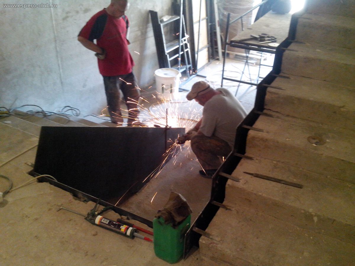 | Цитата AiS (  ) а как это вы---по месту ступени вырезаете...а если рука дрогнет Так и дрожжат Варится шаблончик в виде слесарного угольника...струбцинами прикручивается к установленому листу по разметке и по нему уже режется...так что если даже рука и дрогнет то пострадает этот угольник Такими приспособоми пользуемся тогда когда много резать надо ,а когда штучная резка нужна то заморачиваться не будем...режем по черте.