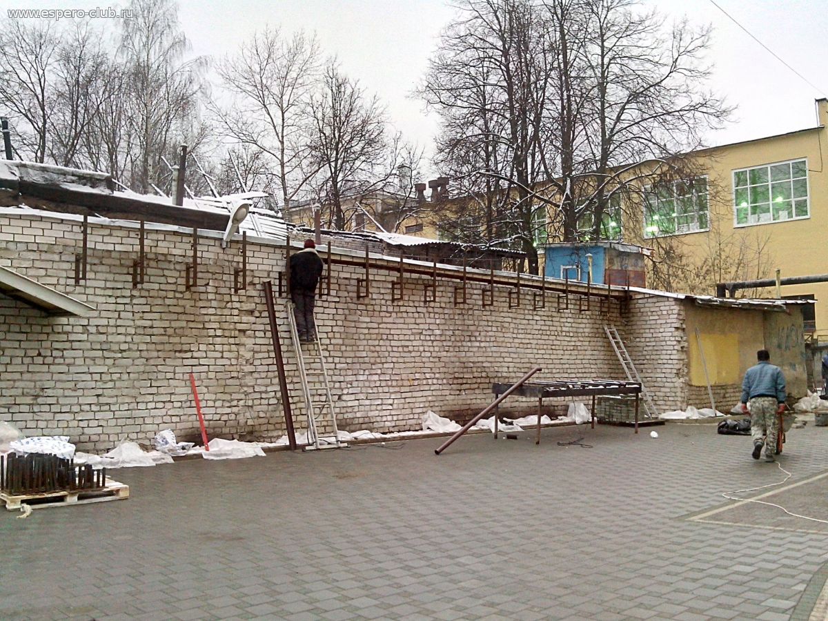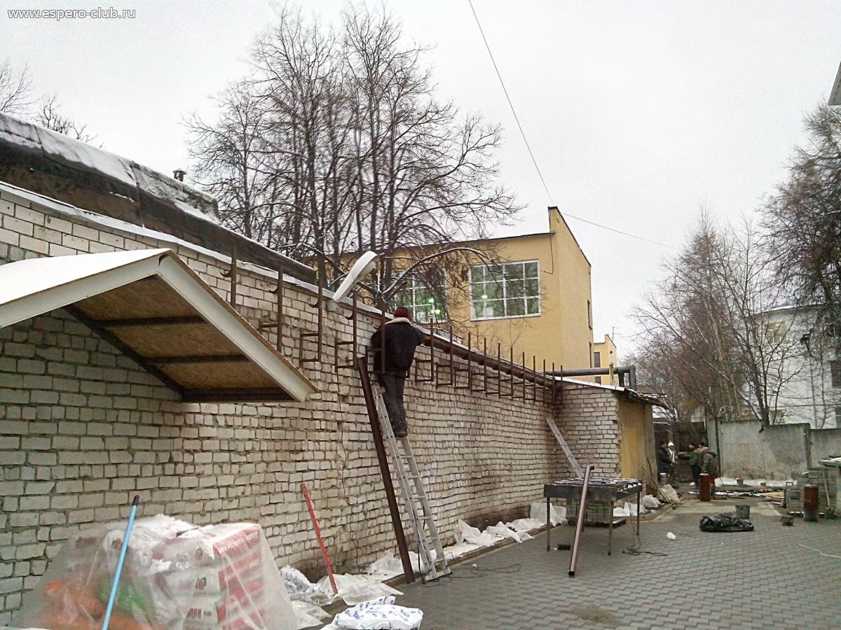 | На неделе занимались вот такой хренью...это система для затягивания стены длинной в 40 с лишним метров диким виноградом с внедрённой в неё системой отвода воды с крыши гаражей.Барин систему забраковал ...после объяснений ему всех"параметров" взял тайм-аут...сейчас репу чешет(думает).